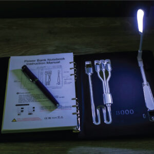Notebook, IPhone output cable, android output cable, type-c output cable, Flash Disk 8gb, Lighter & Power bank 8,000 mAh